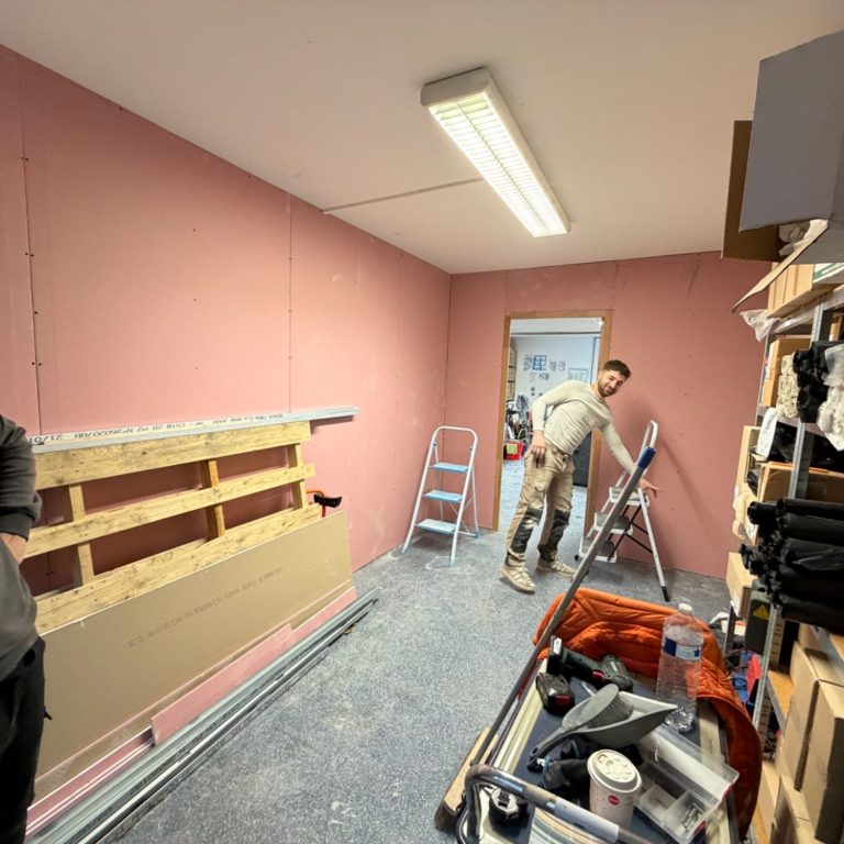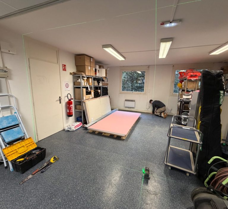 Local professionnel oblige, l’ensemble de la piécette est réalisé avec un placo coupe-feu